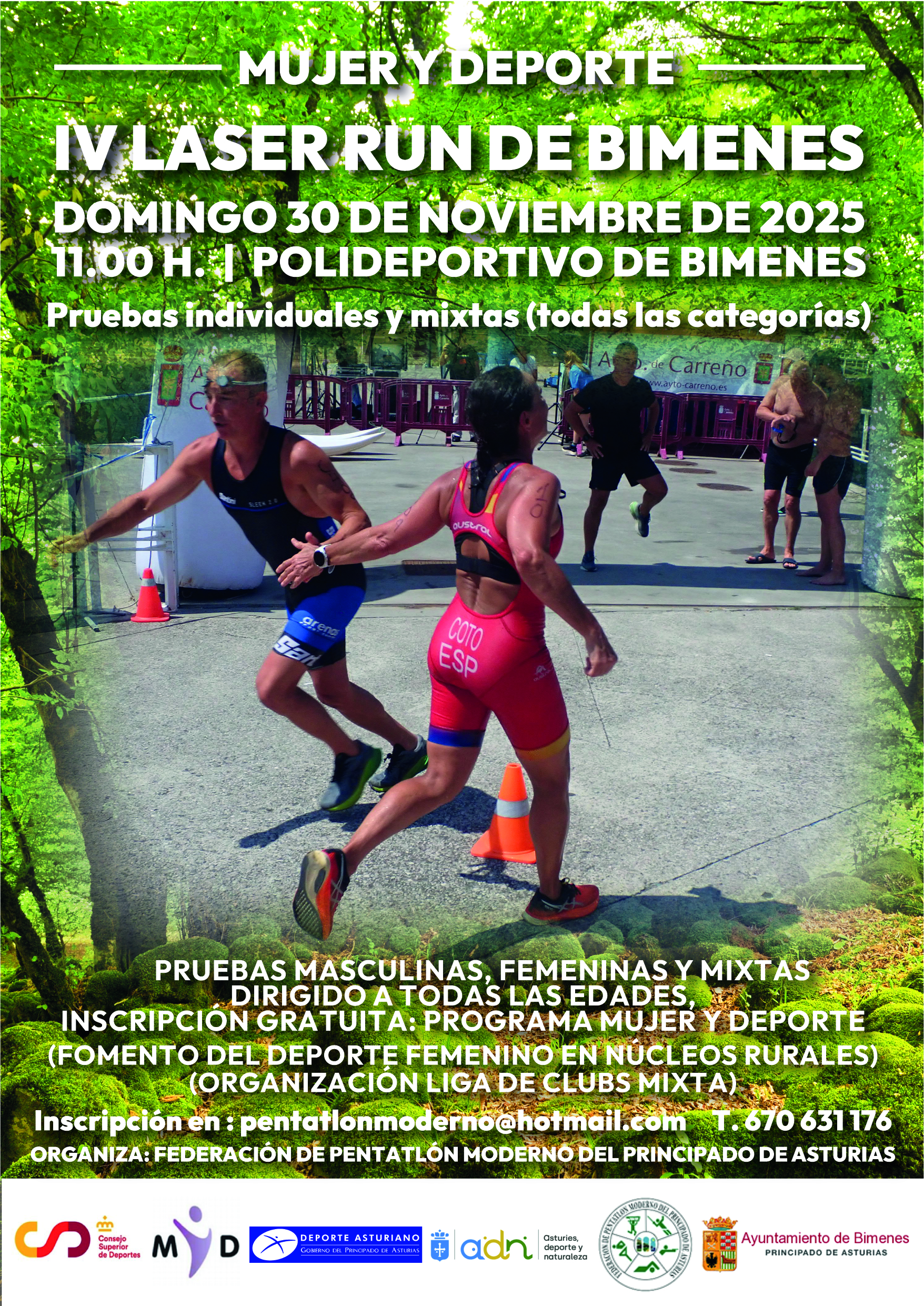 Tras un noviembre lleno de acci贸n, que incluy贸 la Toma de Tiempos en Oviedo y la emocionante competici贸n del II Laser Run de Caravia, el circuito asturiano de Pentatl贸n Moderno cierra el mes con otra cita imperdible. El IV Laser Run de Bimenes nos lleva a la comarca de la Sidra para un evento que destaca por su enfoque en la igualdad y la promoci贸n del deporte femenino en entornos rurales.